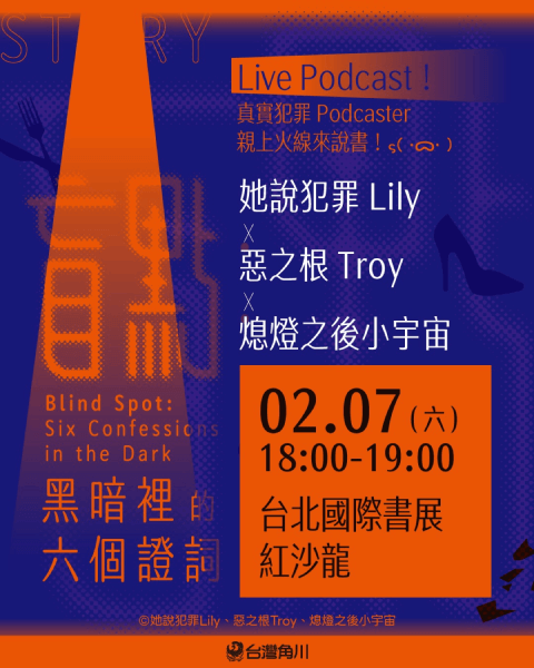 台灣三大真實犯罪 Podcast 首度合作──《熄燈之後》、《她說犯罪》、《惡之根》強強聯手,累積超過500萬次收聽,從聲音延伸至紙上,六篇改編自真實案件的故事,打造年度最受矚目的犯罪小說集!